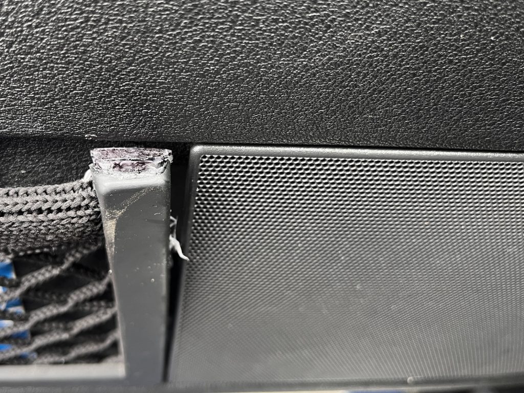 Auf der Fahrerseite ist im Netz in der Tür vorne eine Nase abgebrochen. An der Funktion tut es keinen Abbruch.